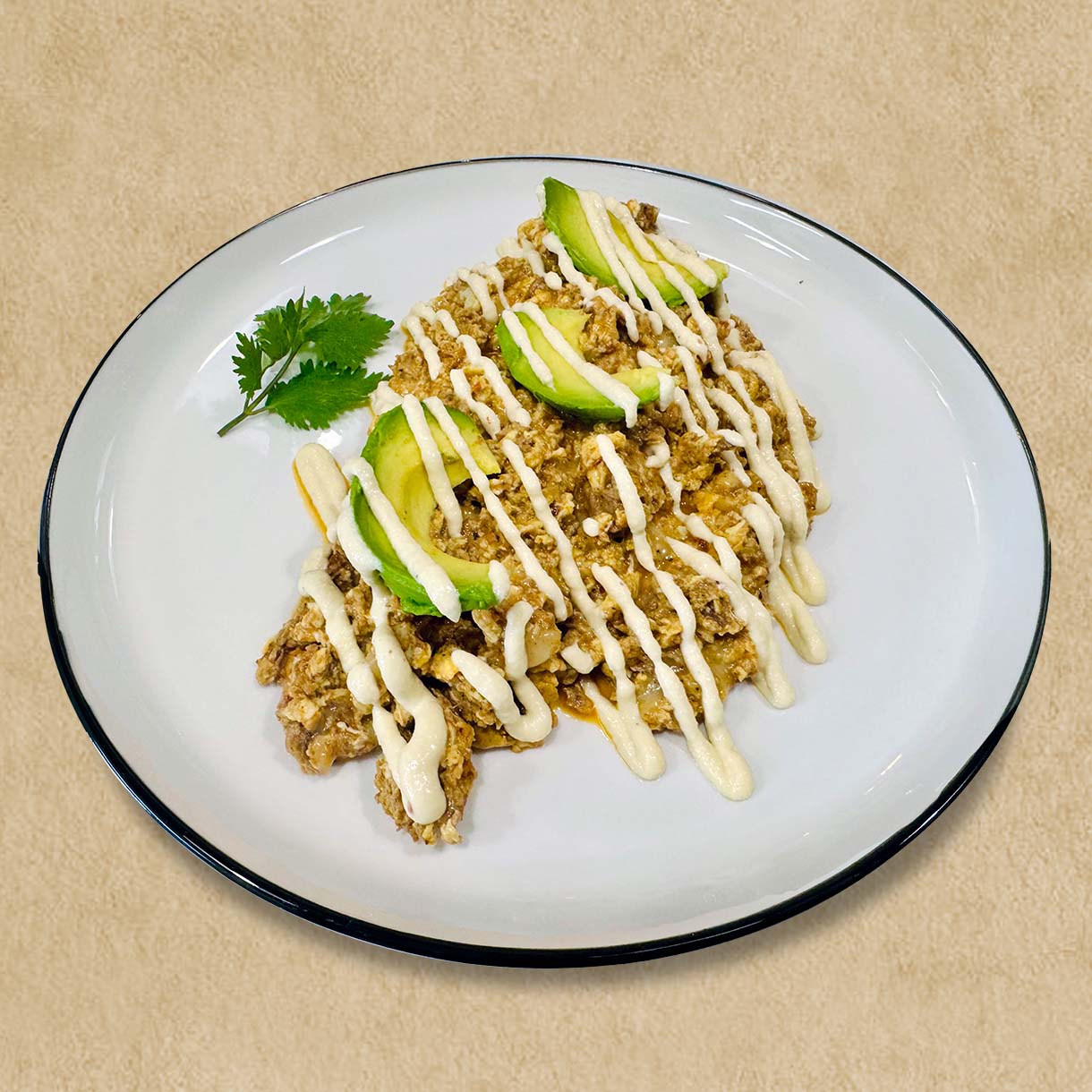 Your choice of style: Ratatouille, Mushroom, Chicken Tinga, Barbacoa Beef or Mexican Style Chorizo, scrambled with 3 eggs, cheese, salsa topped with cashew sauce and avocado. Keto friendly. $20.99